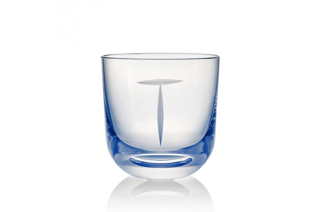 Unique blue crystal combined with simple round shape and hand carved monogram.
