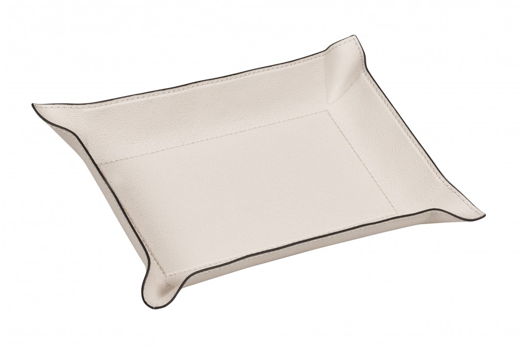 The rectangular Jack tray by GioBagnara is there for you when you return home in the evening. This compact tray consists of a solid metal base with flexible side wings. The frame is wrapped in Italian leather with white stitching. Thanks to this construction, the tray can be shaped exactly to your needs. If you want to take this practical tray with you while travelling, simply flatten it and store it in your luggage to save space.