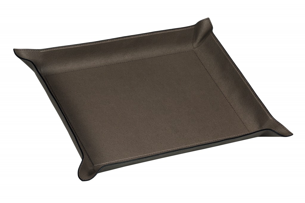 The rectangular Jack tray by GioBagnara is there for you when you return home in the evening. This compact tray consists of a solid metal base with flexible side wings. The frame is wrapped in Italian leather with white stitching. Thanks to this construction, the tray can be shaped exactly to your needs. If you want to take this practical tray with you while travelling, simply flatten it and store it in your luggage to save space.