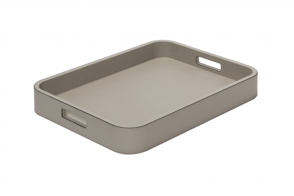 The rectangular serving tray from the Polo collection by GioBagnara is crafted from a solid base covered in high-quality leather. It features clean lines, practical handles and a durable surface that is easy to maintain.
