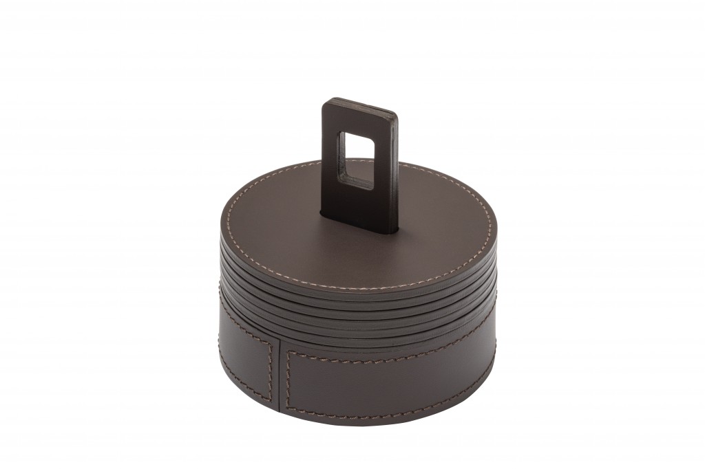 The coasters are made from durable Tecnocuoio®, a material designed to withstand everyday use while maintaining a clean and elegant appearance. A stylish serving accessory that seamlessly combines functionality with modern design.